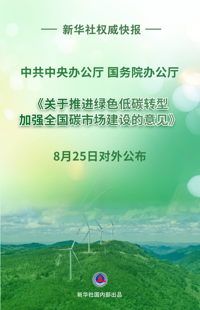 8月25日,中共中央办公厅、国务院办公厅《关于推进绿色低碳转型加强全国碳市场建设的意见》对外公布。
