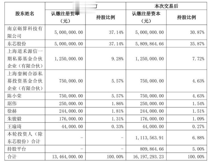 本次增资完成后,东芯股份持有上海砺算约35.87%的股权。