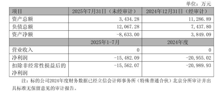根据公告显示,上海砺算2024年资产总额约为1.13亿元,净利润约亏损2.1亿元。今年1-7月,上海砺算资产总额约为3434万元,净利润约亏损1.55亿元。